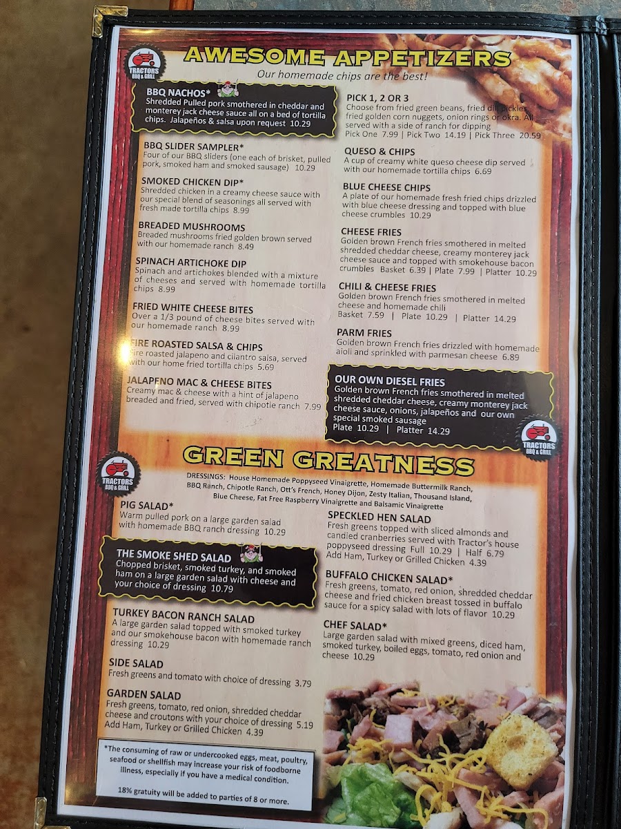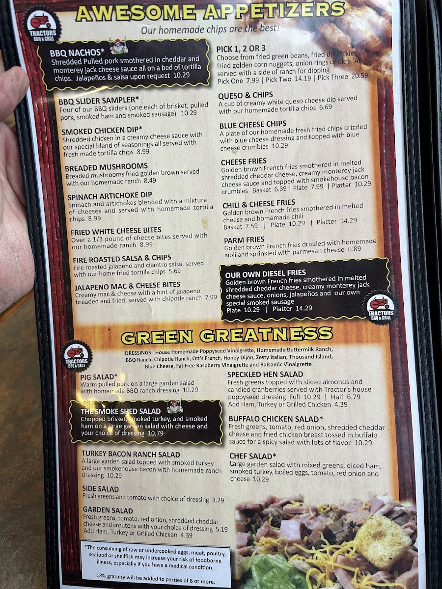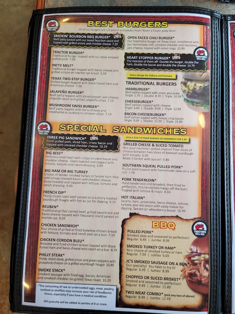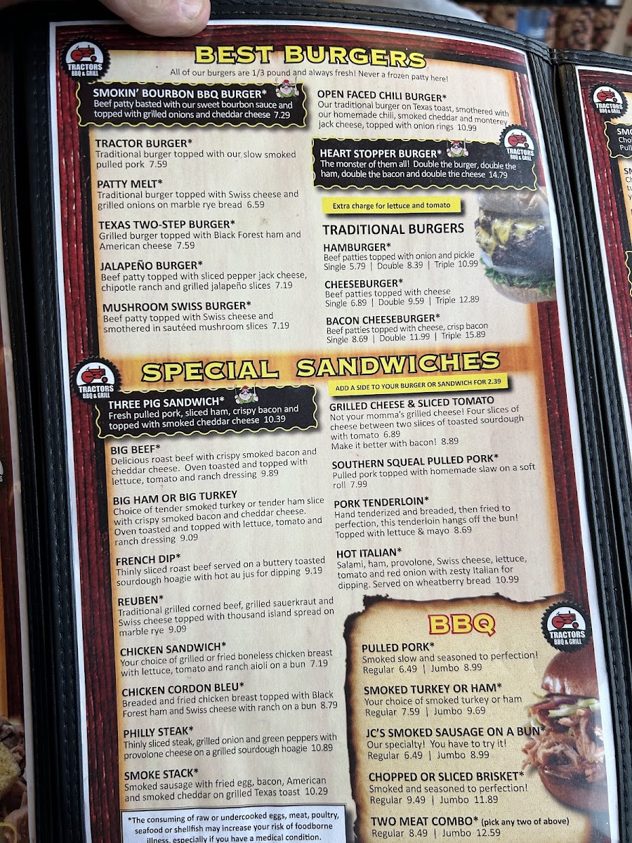 Welcome to Tractor's BBQ And Grill, where the heart of Missouri meets mouthwatering barbecue. Nestled at 1008 E 12th St, Lamar, this charming eatery exudes a cozy, hometown vibe that envelops you like a warm embrace. The menu boasts an array of flavors, from the juicy Smokin' Bourbon BBQ Burger to the tender, flavor-packed ribs that have patrons raving. Don't miss the Pig Salad or the iconic open-faced chili burger, both showcasing the restaurant's dedication to fresh ingredients and hearty portions.